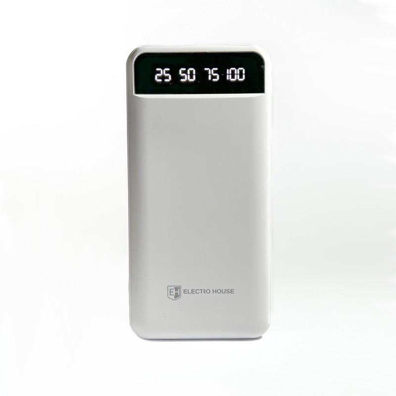 Power Bank 20000 mAh з ліхтариком type-c Білий EH-P-02-W бренду Electro House - це місткий, потужний і компактний універсальний акумулятор, який дозволить повністю зарядити ваш девайс декілька разів. Одночасно можна заряджати два пристрої. Невеликий розмір і вага роблять універсальний акумулятор зручним для використання в будь-якій ситуації. Зручно брати з собою в поїздку, використовувати в транспорті, вдома або в офісі. Power Bank 20000 mAh з ліхтариком type-c Білий оснащений дисплеєм для індикації заряду батареї та ліхтариком, має сучасний ергономічний дизайн корпусу. Виготовлений з високоякісних компонентів і стане надійним джерелом живлення для вашого мобільного пристрою. На початку експлуатації потрібно 2-3 рази повністю зарядити/розрядити Power Bank. Час до повної зарядки - 3-4 години.