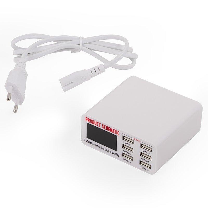 Зарядна станція WLX-896 Зарядний пристрій з контролем струму заряджання на 6 USB портів 6 портів USB 5В із максимальним сумарним струмом 8А, максимальний струм на 1 порт 3,5А.