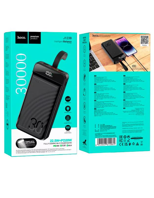 Hoco Element J123B с емкостью 30000 мАч — это надежное и мощное решение для подзарядки ваших устройств в любое время и в любом месте. Компактный, но емкий аккумулятор в черном цвете выполнен из прочных материалов, что обеспечивает его долговечность. Стильный дизайн и эргономичная форма делают его удобным в использовании, идеально подходит для путешествий, поездок и ежедневного применения.
