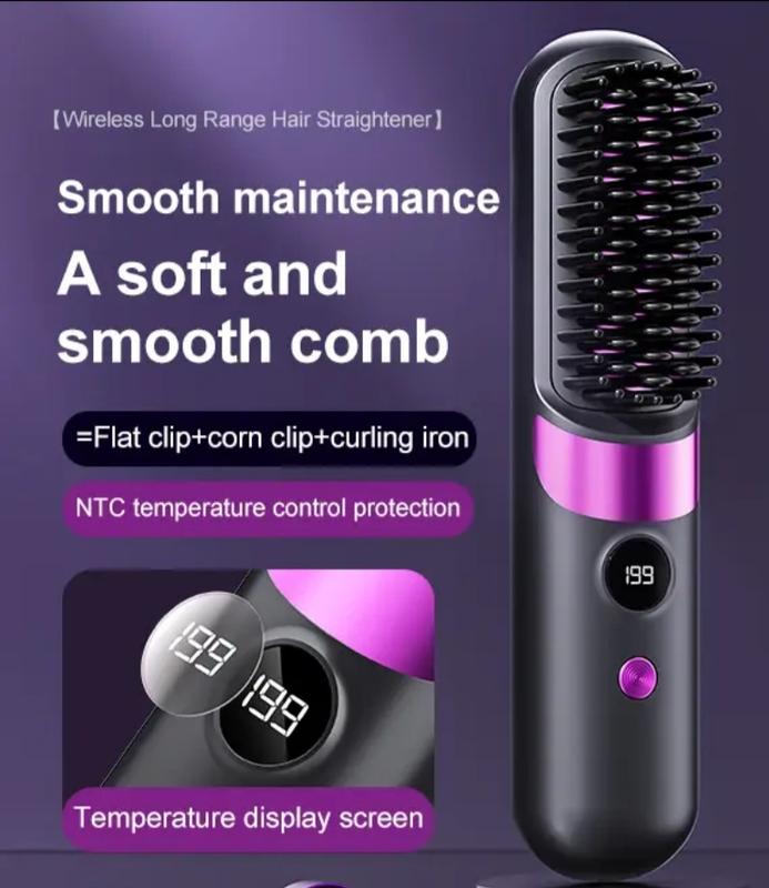 Під час вимкнення світла допоможе зробити укладку та висушити волосся гребінець з акумулятором. Трирівневе регулювання температури, швидке нагрівання, LED-дисплей, міні, 4000 mAh акумулятор.