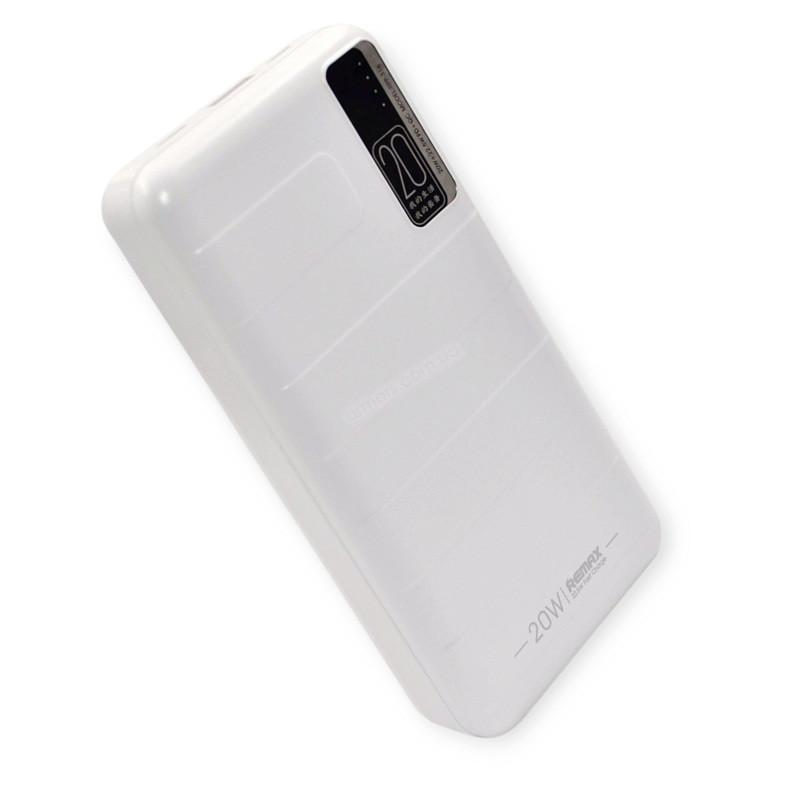 Повербанк 20000 mAh, 1 USB вихід, заряд через MicroUSB, Type-C, індикатор заряду, білий Remax