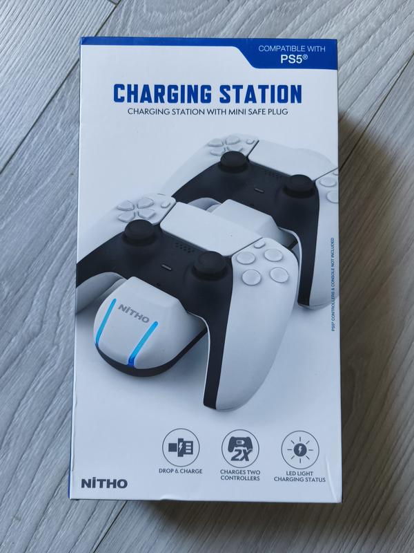Зарядная станция NITHO для двух контроллеров PS5® DualSense® с бесштекерными контактами Easy & SafeTM 2 штекера Easy & SafeTM соединяют контроллеры и зарядную станцию, защищая зарядные штекеры контроллера от повреждений Два передних светодиодных индикатора, указывающих на состояние зарядки USB кабель для зарядки для подключения к консоли нове заказ по минимальной плате 200грн, оплата на карту, также можете оформлять безопасную доставку укрпоштой (новой по почте безопасной оплатой не отправки)💌