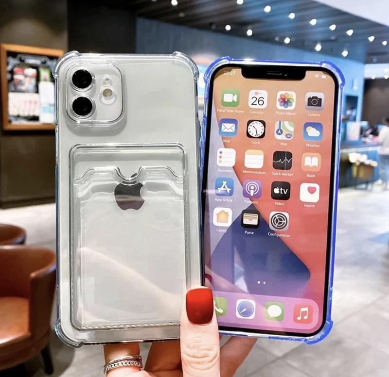 Чохол на iPhone 13 Чорний, напівпрозорий, має місце для картки або документів, ударостійкий🔥