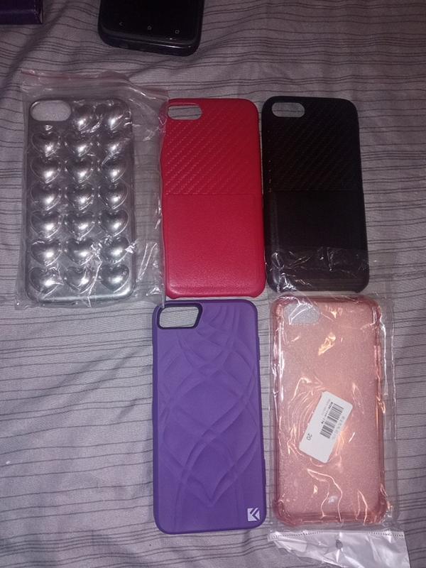 Продаються чохли для iPhone 7 1) чорний шкіряний handmade, бренд Avatti = 150грн; 2) червоний шкіряний handmade, бренд Avatti = 150грн; 3) срібло - серця (б/в) = 60грн; 4) крістал педрово-рожевий прозорий силіконовий 125 грн; 5) фіолетовий софт скін soft touch, бренд Floveme, чохол з вбудованим дзеркалом = 285грн. знижки, якщо декілька чохлів разом.