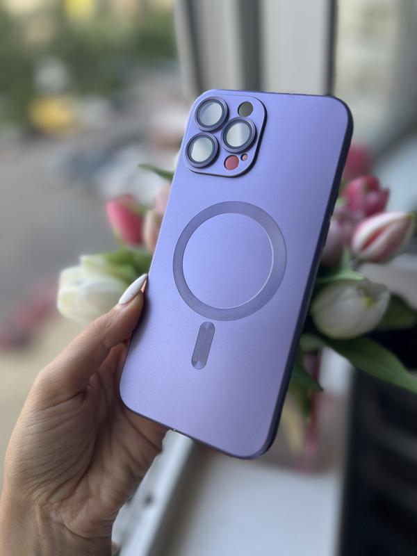 Чохол силіконовий в кольорі діп пурпл з магнітним кільцем MagSafe з захистом камери та вбудованим захисним склом на ній Відправлення Новою поштою та Укрпоштою