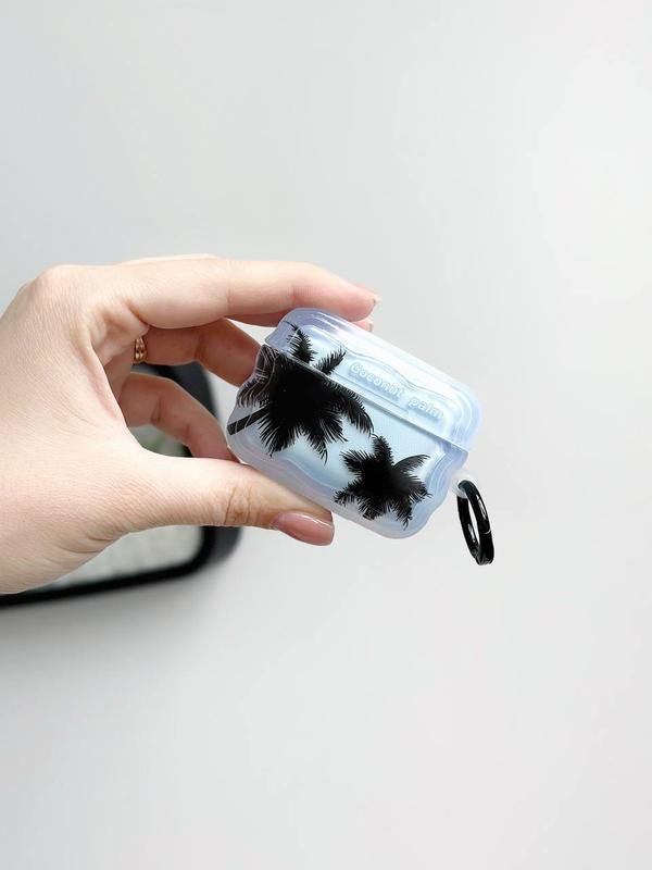 Чохол з принтом пальми пластиковий на карабіні чорному, для навушників AirPods Pro.