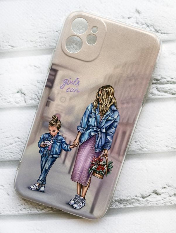 Чохол на apple iphone 11 (6.1) рельєфний дизайн мама і донька принт 56