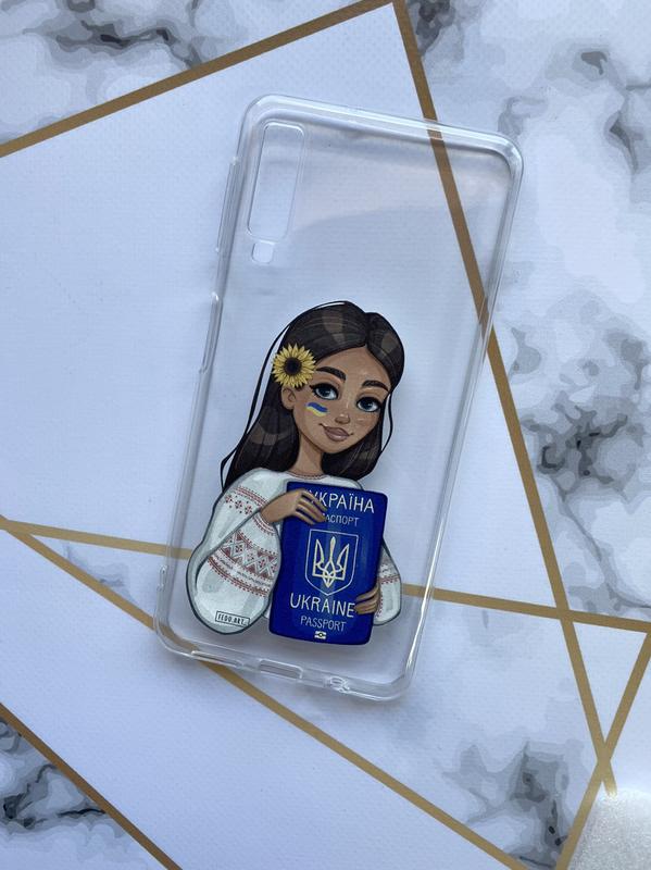Прозорий чохол для samsung galaxy a7(2018) a750 з патріотичним дизайном "дівчина з паспорт...