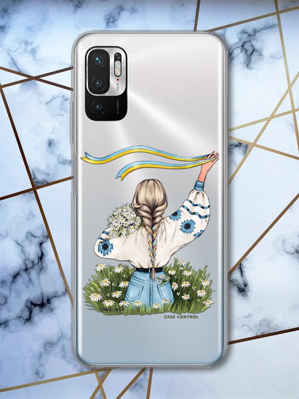 Прозорий чохол на xiaomi redmi note 10 5g патріотичний дизайн дівчина зі стрічкою принт 17