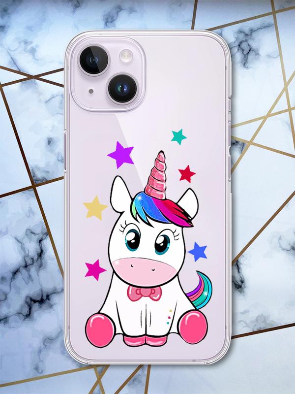 Прозорий чохол із захистом камери на iphone 14 дизайн єдиноріг принт 102