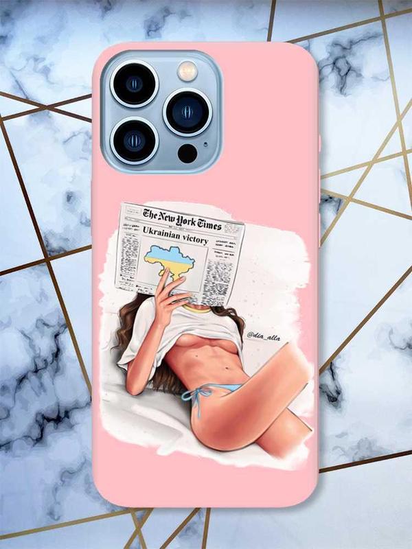 Матовий чохол з рожевими боками на apple iphone 13 pro max дівчина з газетою (принт 31)