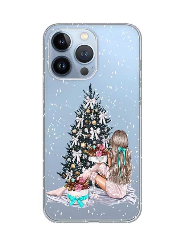 Прозорий чохол на apple iphone 13 pro новорічний дизайн дівчина біля ялинки (принт 139)