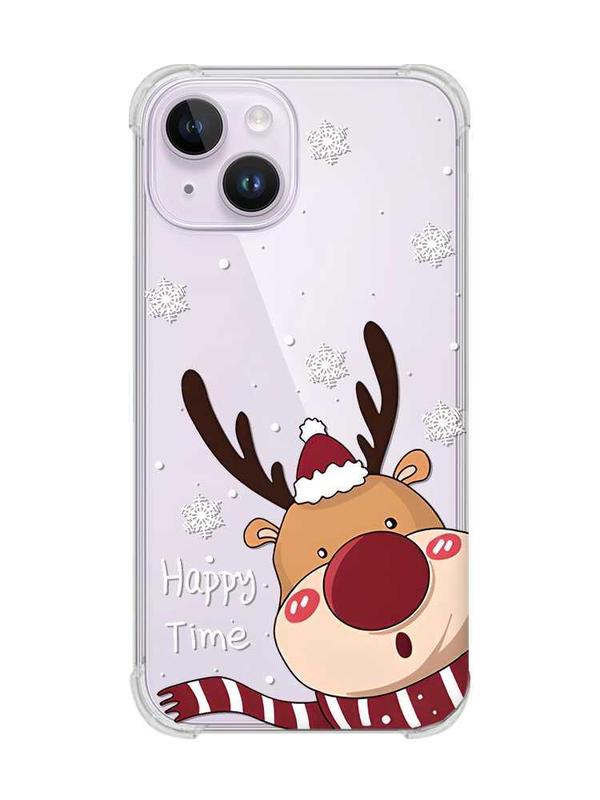 Прозорий чохол із потовщеними кутами на iphone 14 зимове оленя (принт 155)