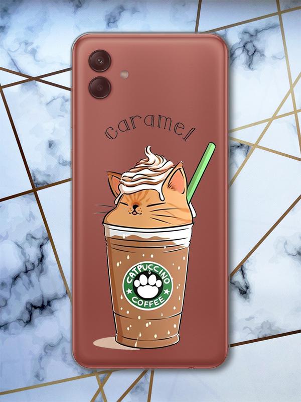 Прозорий чохол на samsung galaxy a04 капучіно котик (принт 97)