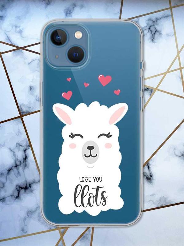 Прозорий чохол на apple iphone 13 рельєфний дизайн лама принт 94