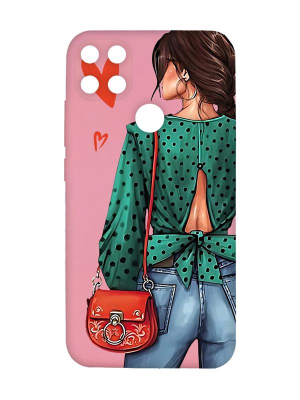 Матовый чехол с розовыми боками на xiaomi redmi 10c девушка в зеленом (принт 224)