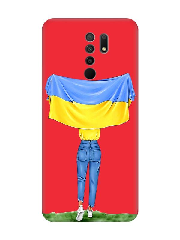 Матовий чохол з червоними боками на xiaomi redmi 9 :: дівчина з прапором (принт 263)