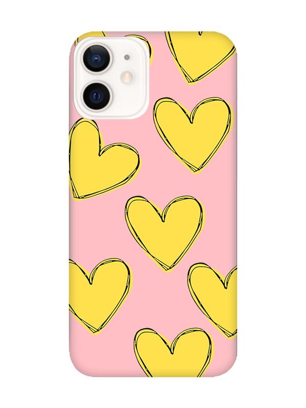 Матовий чохол з рожевими боками на apple iphone 12/12 pro (6.1) :: сердечка жовті (принт 2...