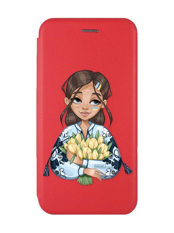 Чохол-книжка з малюнком для xiaomi redmi note 12 червоний :: дівчина з тюльпанами (принт 2...