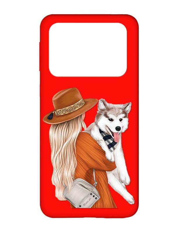 Матовый чехол с красными боками на xiaomi poco x4 pro 5g :: девушка с собачкой (принт 115)