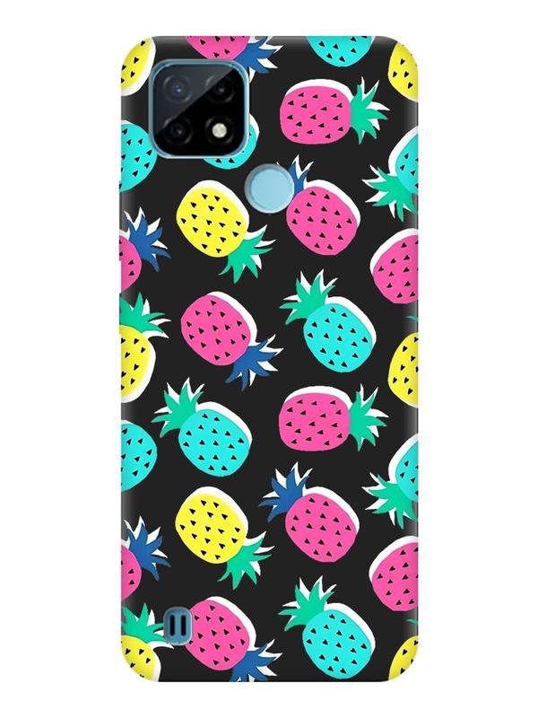 Матовий чохол з чорними боками на realme c21y :: різнокольорові ананаси (принт 346)