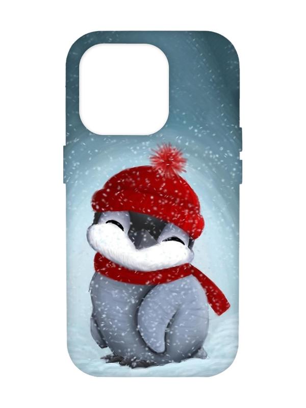 Чехол с красными боками на apple iphone 14 pro max :: пингвинёнок в шапочке (принт 157)