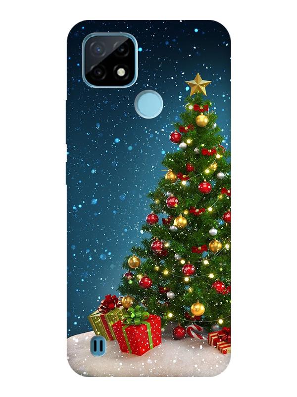 Матовий чохол з червоними боками на realme c21y :: ялинка з подарунками (принт 159)