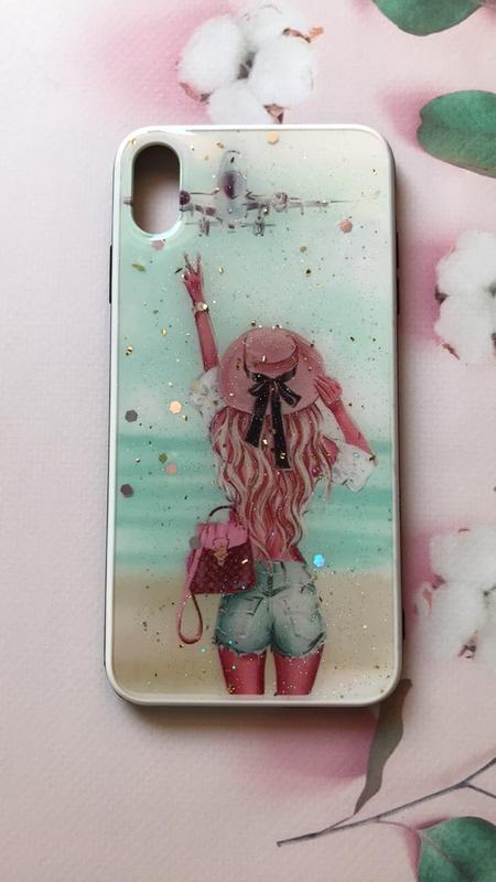 Силіконовий чохол з малюнком і блискітками для iphone xs max дівчина в капелюсі