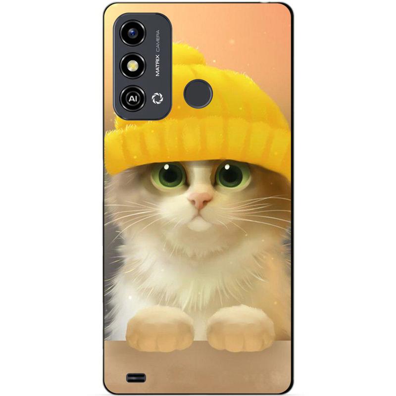 Силіконовий чохол бампер для zte blade a53 з малюнком котик у шапці