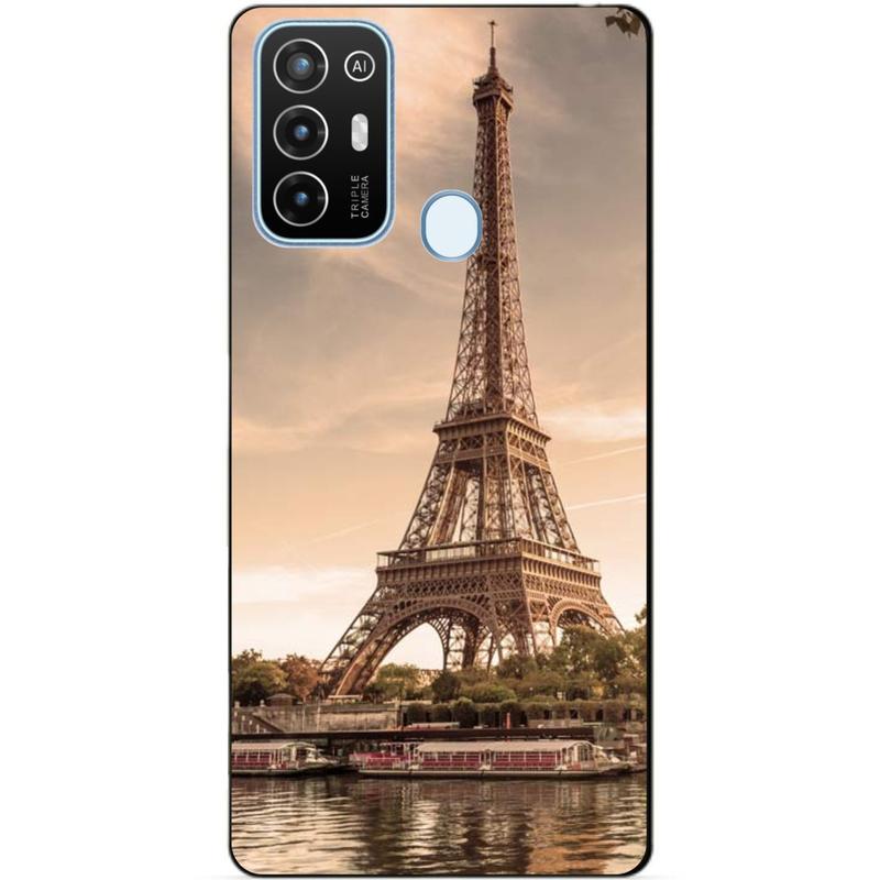 Силиконовый бампер чехол для zte blade a52 с рисунком эйфелева башня