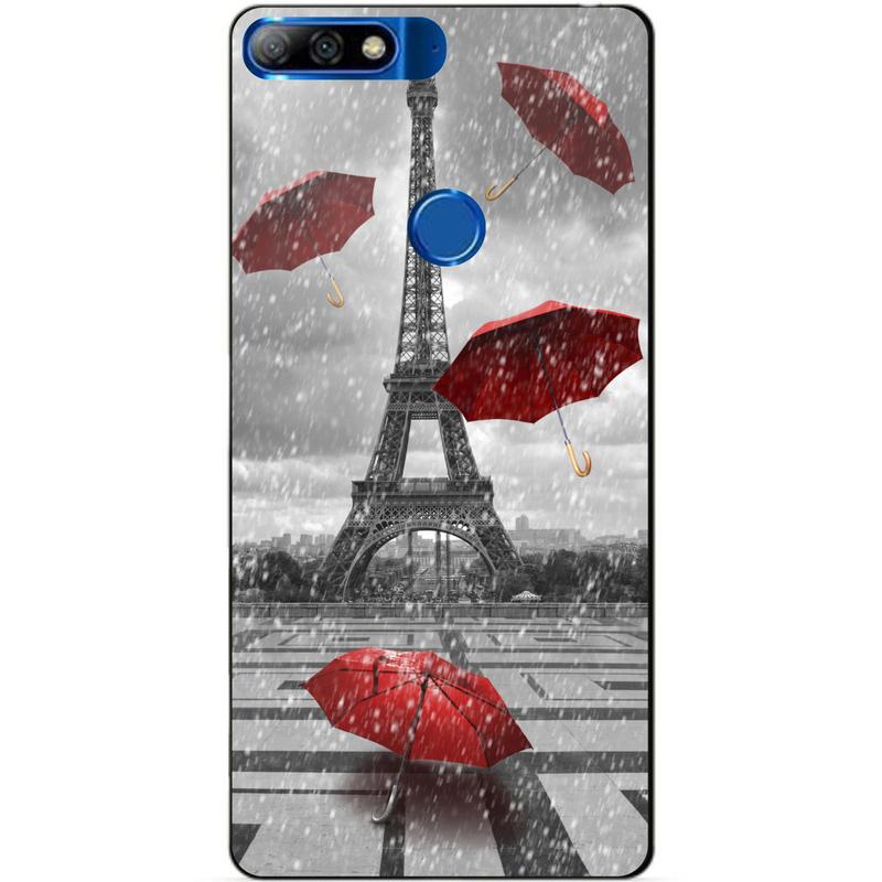 Чохол силіконовий бампер для huawei y7 prime 2018 з малюнком дощ у парижі