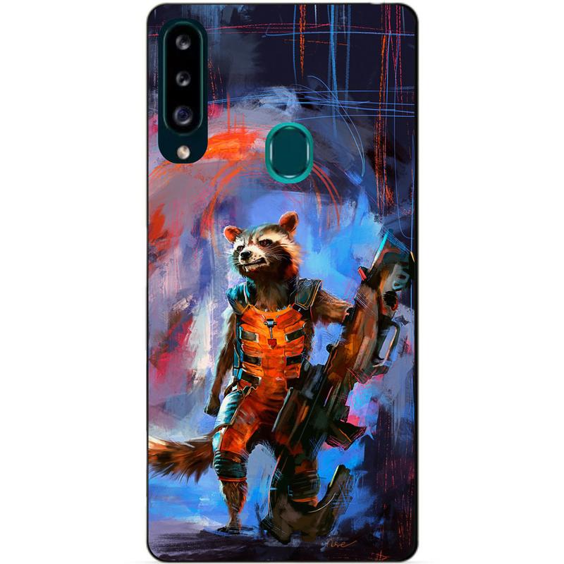 Силиконовый чехол бампер для samsung a20s 2019 a207f с рисунком реактивный енот стражи гал...
