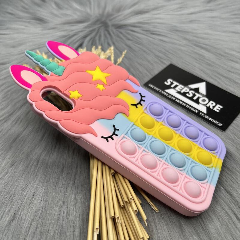 Чохол unicorn pop it для iphone x xs рожевий протиударний силіконовий дитячий