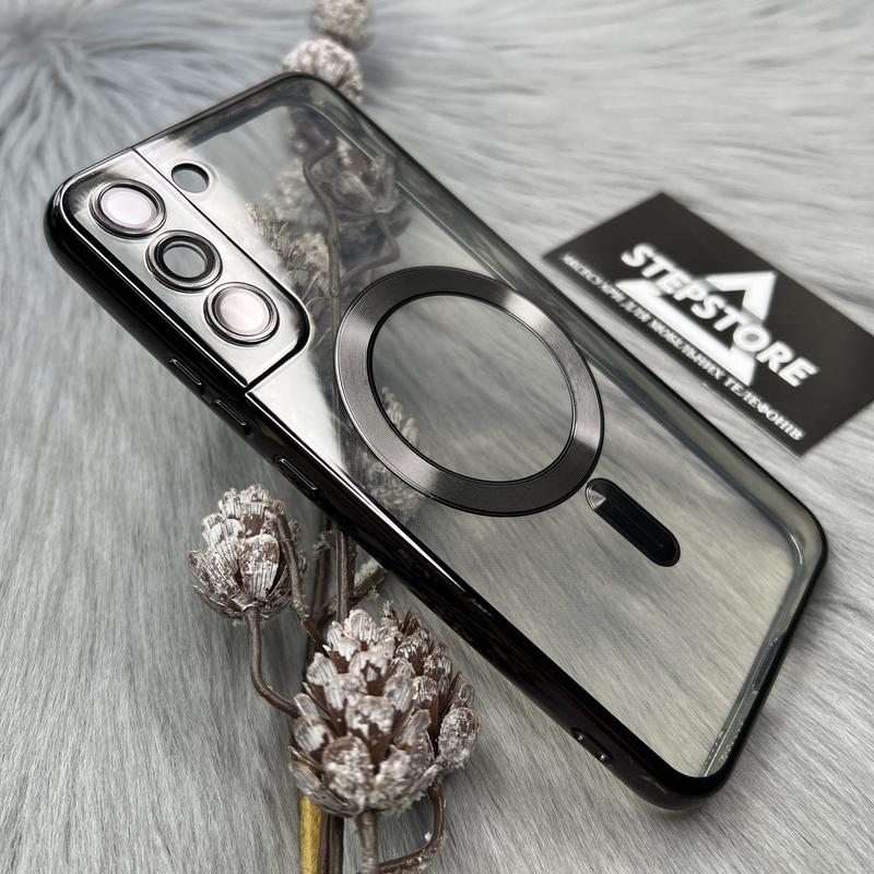 Чохол із лінзами на камеру для samsung s22 plus s906 magsafe прозорий хромований протиудар...