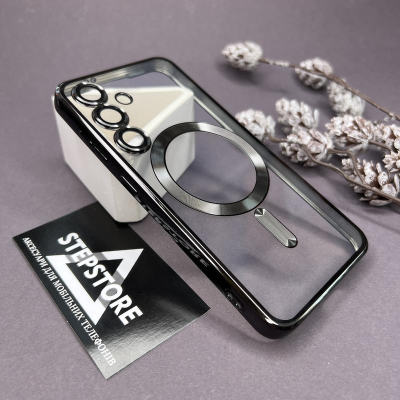 Чохол із лінзами на камеру для samsung s24 magsafe прозорий хромований обідок протиударний