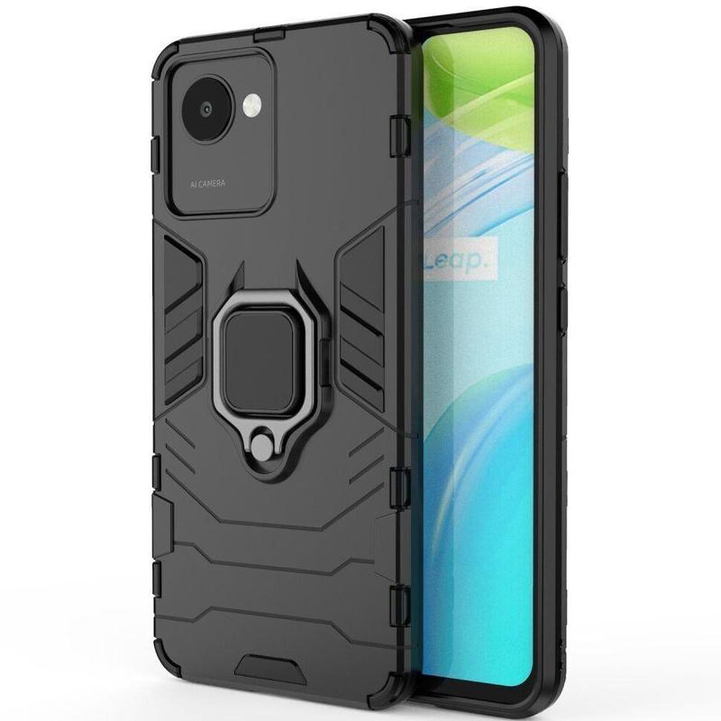 Чохол fiji ring для realme c30 броньований бампер з кільцем підставкою чорний