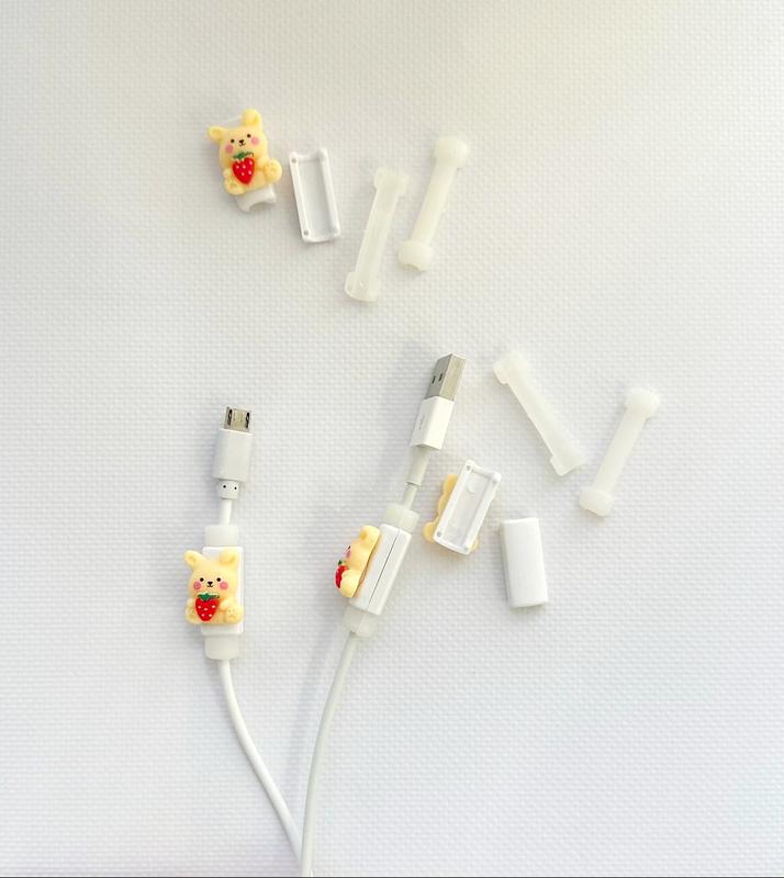 Защитные чехлы силиконовые для зарядного кабеля usb в виде милых зайчиков бежевого цвета...