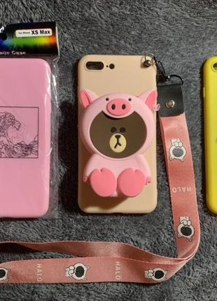 Виробник: Інший виробник Тип аксесуара: Чохли Нові та б/в чохли за хорошою ціною. Дивіться наступні фото Перше фото: нові чохли на XS max і 7+ – 80 грн. Друге фото: два бу силікон кейс на 6 iPhone, блакитний 25 грн, рожевий 10 грн (є надломи і слід від попсокета на рожевому, див. 4 фото) і пластмасовий 5 грн Третє фото: два чохла на 5S, об'ємний заєць і фарбований силіконовий – 10 грн; Чохли на airpods: - три простих чохла - 50 грн - об'ємні годинник - 70 грн (новий) - об'ємний ведмедик moschino - 100 грн (новий) Ремінців miband немає
