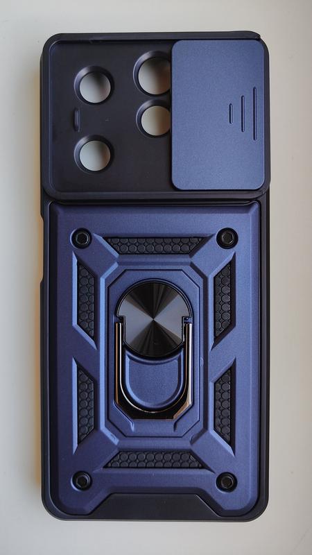 Протиударний чохол надійно захищений від екстремальних і форс-мажорних ситуацій. Гнучка силіконова панель має жорсткий металізований корпус і підставку для пальця. Чохол здатний витримати навіть сильні удари та подряпини. Вбудований регульований кронштейн для кільця: кільце, що обертається на 360°, знімається або висувається як підставка, щоб звільнити руки. Це дасть змогу вам використовувати кільце як підставку для ґаджета, використовуючи свій смартфон під час перегляду відео, роблячи фото або користуючись інтернетом. Чохол приємний на дотик, має протиковзне покриття проти поту та відбитків пальців. М'який тонкий матеріал не пошкоджує мобільний телефон, ударостійкий і піднятий, утворюючи борт, щоб захистити камеру та екран. Конструкція сумісна з магнітним тримачем (не містить магнітного автомобільного кріплення): у цьому разі може надійно утримувати магнітний автомобільний кріплення і вільно обертатися (не сумісний із бездротовою зарядкою).v
