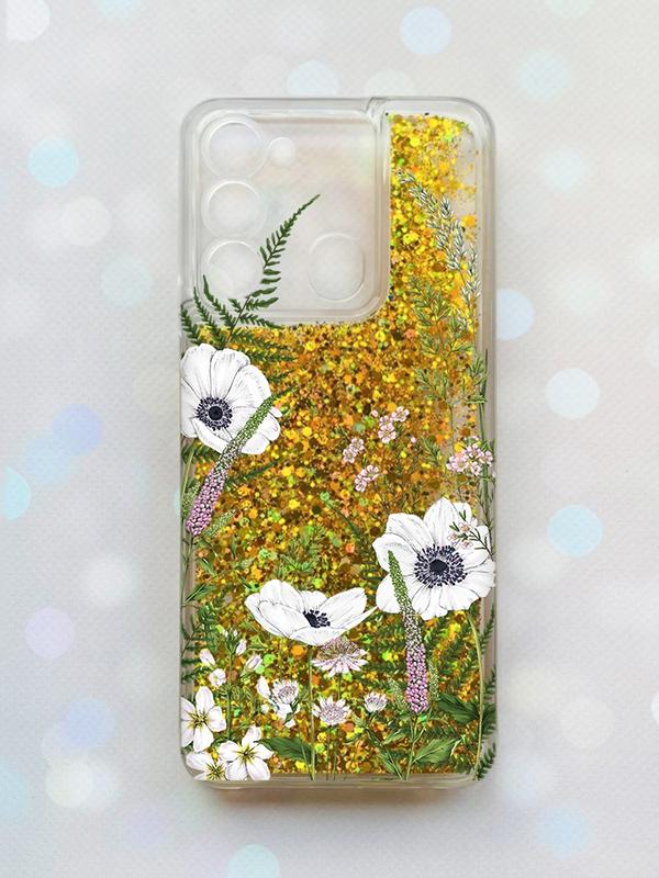 Чехол с плавающими блестками на tecno spark go 2022 золотой :: цветы полевые (принт 363)