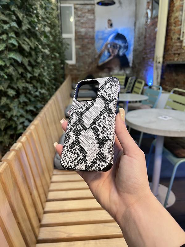 Чохол із принтом сіро-білої змії, із протиударними бортиками, тектурна шкіра