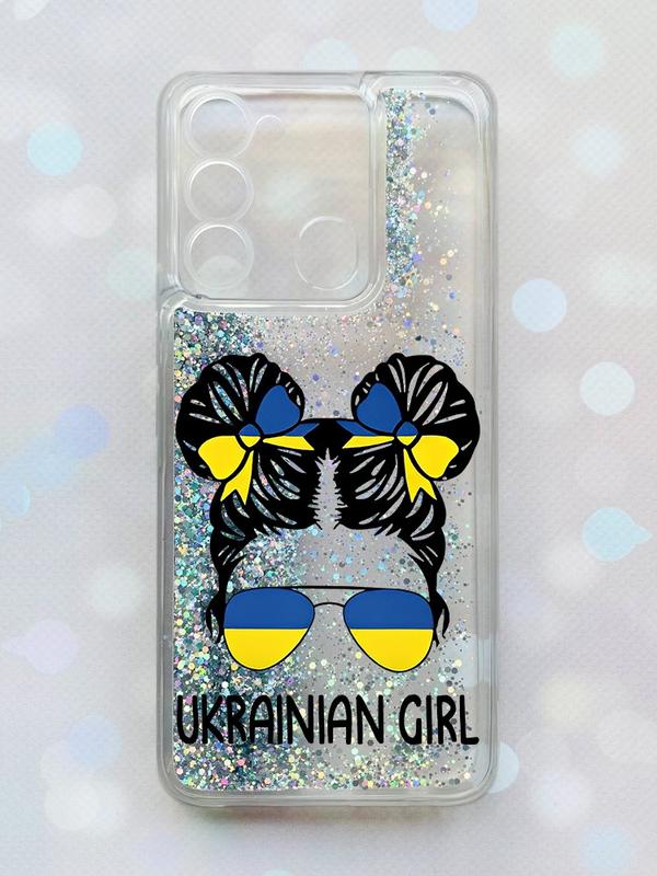 Чохол з плаваючими блискітками на tecno spark go 2022 срібний українська дівчина (принт 11...