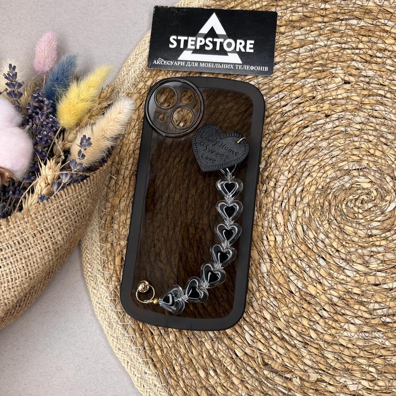 Чохол для iphone 14 plus з ланцюжком із намистин сердечка прозорий силіконовий протиударни...