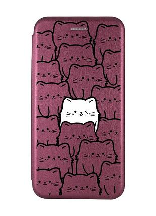 Чохол-книжка з малюнком для xiaomi redmi note 8 бордовий котики (принт 392)