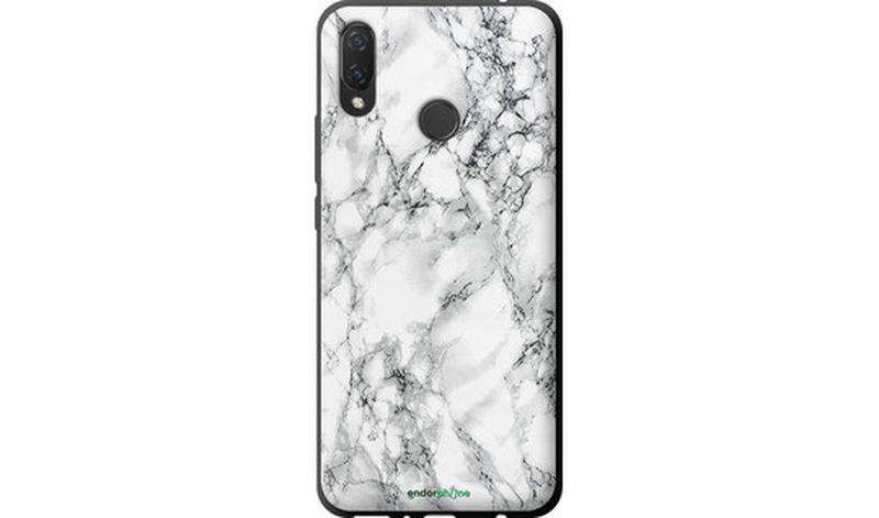 Чехол на huawei p smart plus мрамор белый "4480b-1555-8094", надежная защита на телефон