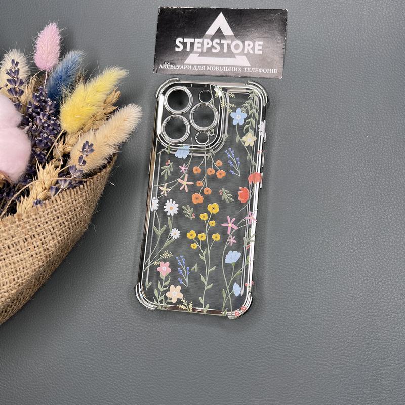 Чохол прозорий для iphone 16 pro з квітковим принтом прозорий глянсовий окантовкою протиуд...