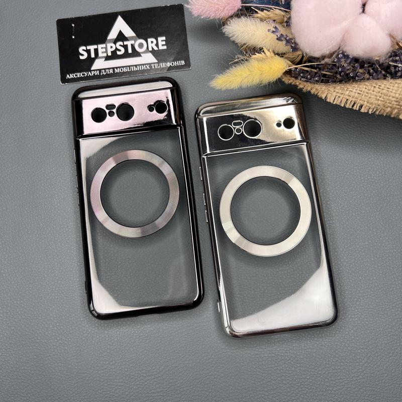 Чохол для google pixel 8 з magsafe прозорий хромований обідок протиударний магнітний силік...