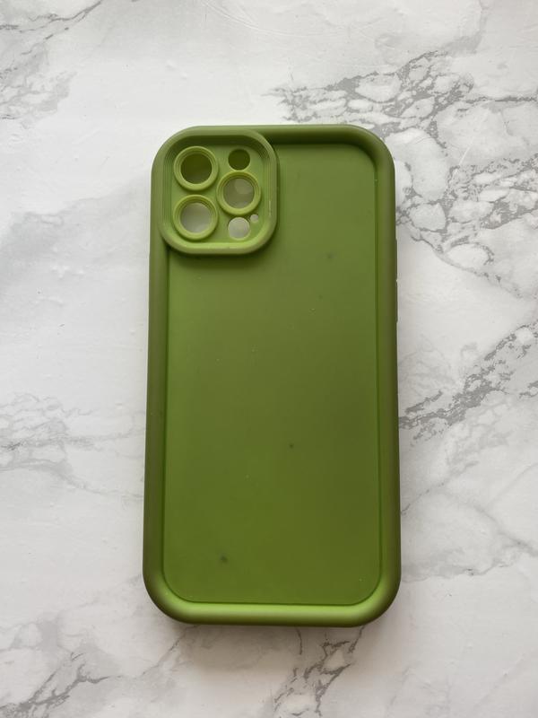Чохол на iPhone 12 pro Оливковий чохол з матовим покриттям — щось середнє між силіконом і пластиком: не ковзає, але й добре тримає форму. Захищає телефон по краях і камеру. Є кілька незначних плям (видно на фото), загалом стан нормальний. Користувалась недовго, просто лежав. Стриманий, унісекс-дизайн. Продаю, бо не використовую.