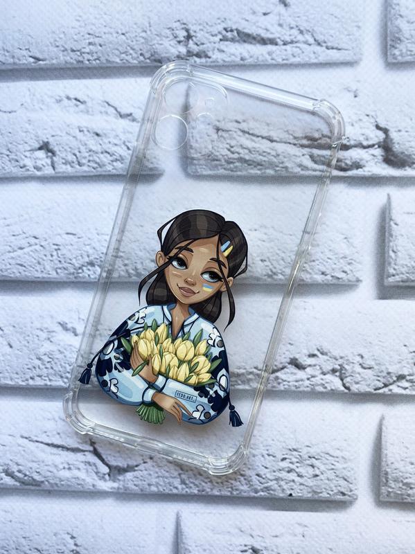 Прозорий чохол для apple iphone 11 (6,1) патріотичний дизайн дівчина з тюльпанами принт 22