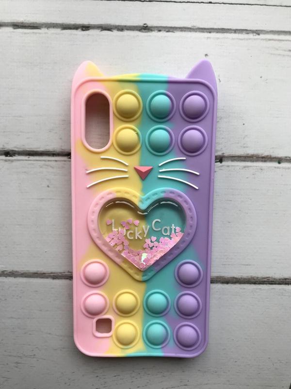 Чохол попіт антистрес поп-іт pop it для samsung galaxy m10 поп іт котик з сердечком рожево...